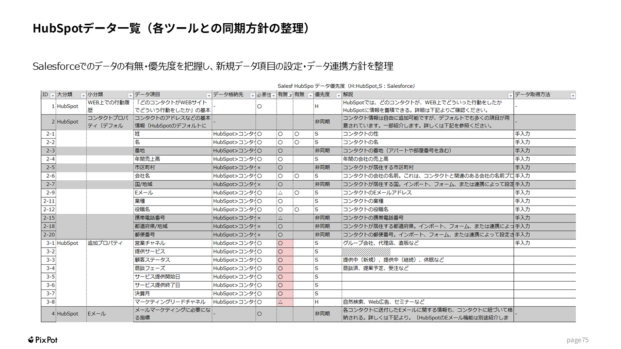 既存のデータを一覧化しつつ、今後のマーケティング施策に必要なデータをMECEに洗い出し、データ設計を行いました。